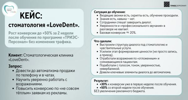 ✓ ОСЕНЬ 2025: после очного обучения администраторов стоматологической клиники конверсия звонков в запись выросла на +50% за 2 недели.